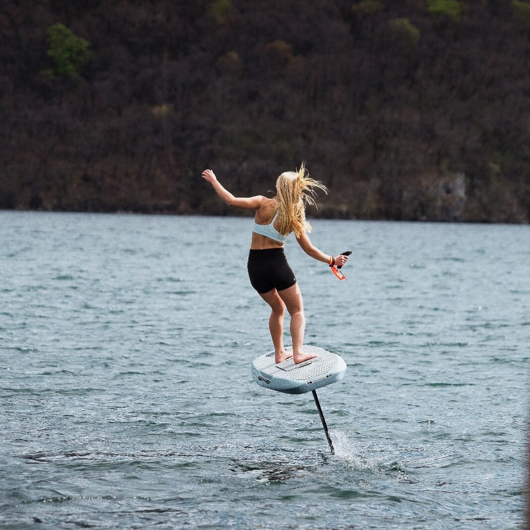 E-foiling is a new water sport where an electric hydrofoil board lifts you above the surface, creating a smooth, flying sensation over the sea. It’s silent, eco-friendly, and doesn’t require waves or wind. Weekly rentals available, shorter periods on request.
