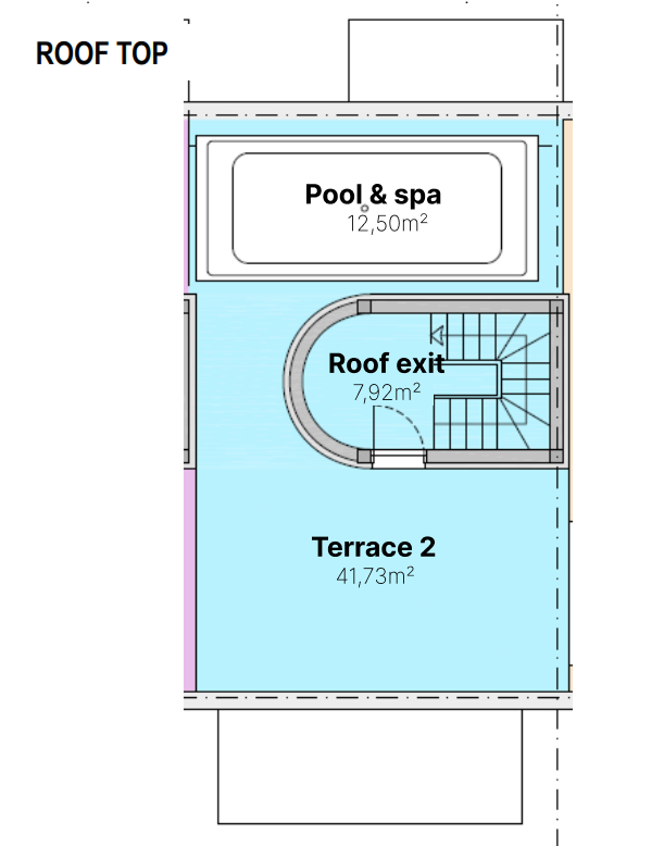 Rooftop: Roof exit, large panoramic roof terrace, and swim-spa/jacuzzi.