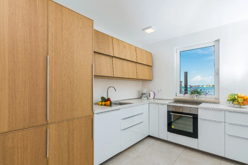The villa features a fully equipped kitchen with modern appliances, a bright living room with a flat-screen TV, and spacious dining areas designed for gatherings. Families with children will appreciate the shallow sandy beaches nearby, while pets are also welcome, making Villa Miri Lily a truly family- and pet-friendly villa in Croatia.