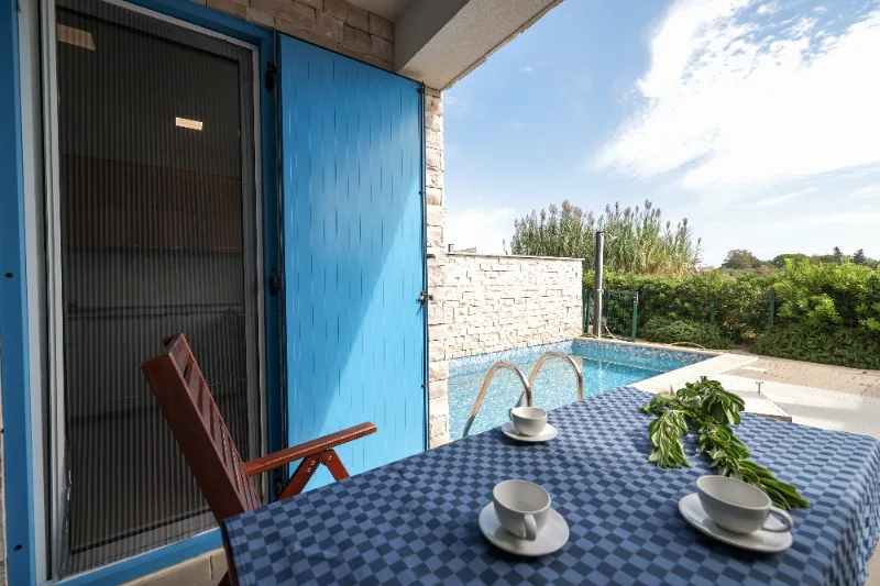 Yes, the villa features a private heated outdoor pool available seasonally. It is exclusively for guests staying at the villa.