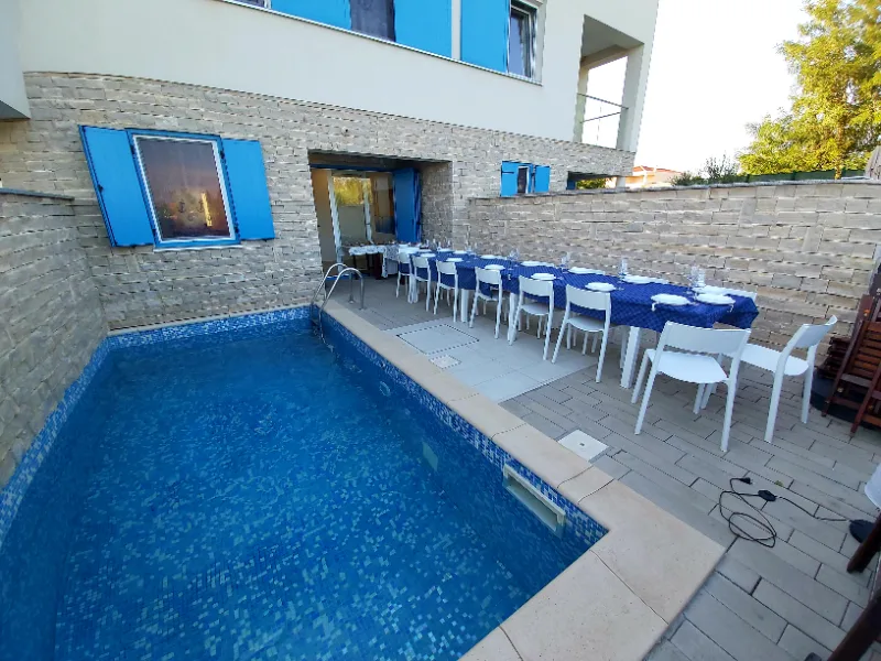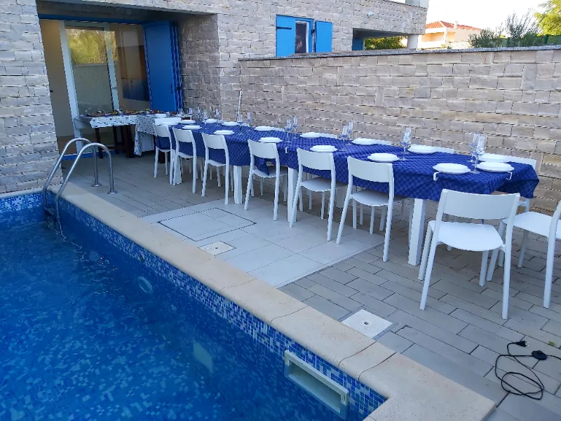 Guests can enjoy cycling, diving, fishing, and water sports, as well as day trips to Nin (5 km) and Zadar (30 km). The villa also offers bike and car rental for exploring the area.
