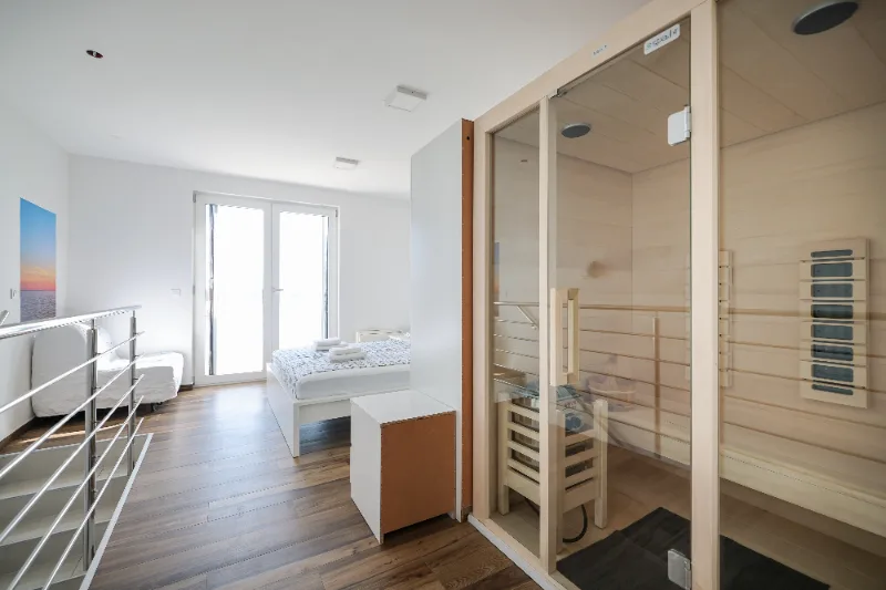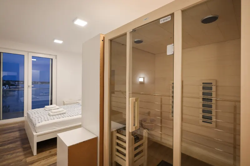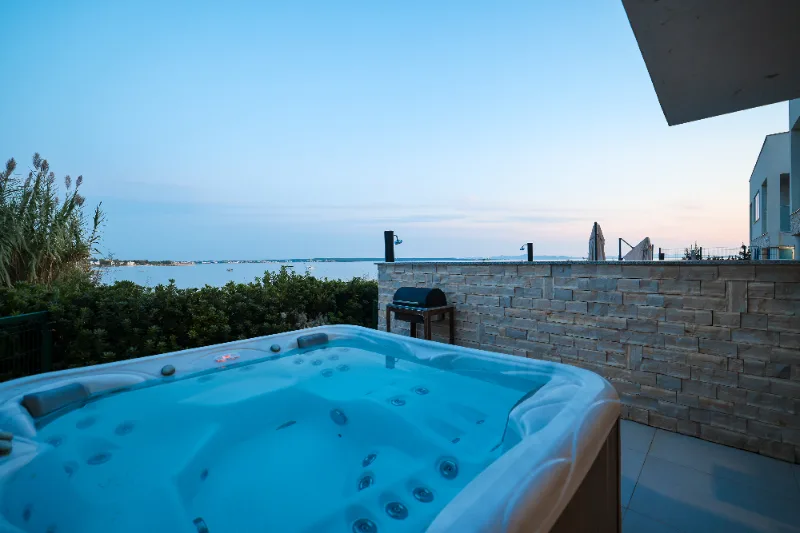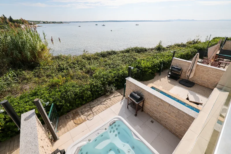 The luxury Villa Miri Palme with Jacuzzi and Sauna is a modern sea-front holiday villa located in Privlaka, just 20 km from the historic city of Zadar. This spacious Dalmatian retreat offers complete privacy and direct access to one of the most beautiful sandy beaches on the Adriatic coast, making it an ideal escape for families, friends, and groups of up to 10 guests.