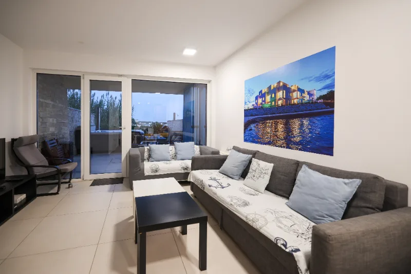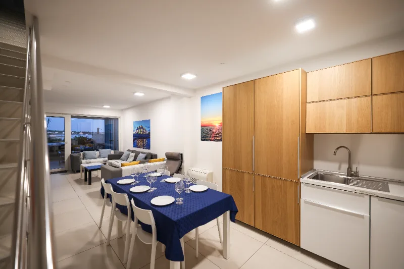 Villa Miri Palme is pet-friendly and includes private parking, free WiFi, and all modern amenities to ensure a carefree holiday. Guests can also enjoy a variety of activities and excursions, such as exploring the Kornati islands, Krka waterfalls, or hiking in Velebit and Paklenica. Adventure lovers will appreciate the option to rent bicycles, kayaks, SUP boards, and boats directly from the villa.