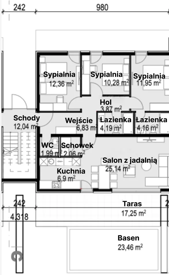 POWIERZCHNIE NA PIERWSZYM PIĘTRZE